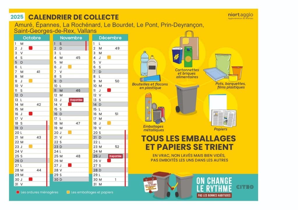 Calendrier de collecte des déchets NiortAgglo Octobre – Décembre